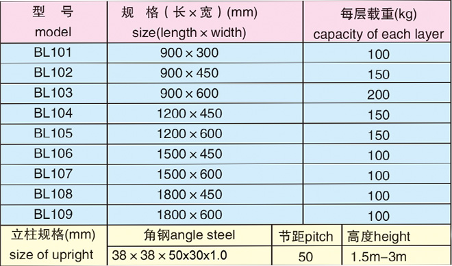 Medium C light, universal angle steel series shelves, superior performance, easy assembly and disassembly, arbitrarily combined steel and wood laminates, layer height can be adjusted at will; specifications and sizes can be determined according to demand.